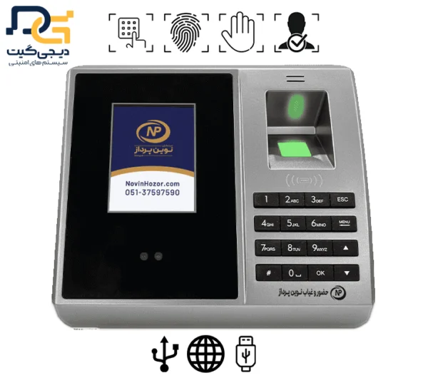 دستگاه حضور و غیاب اثر انگشتی، پردازش چهره و پردازش کف دست نوین پرداز مدل NP589 GPRS