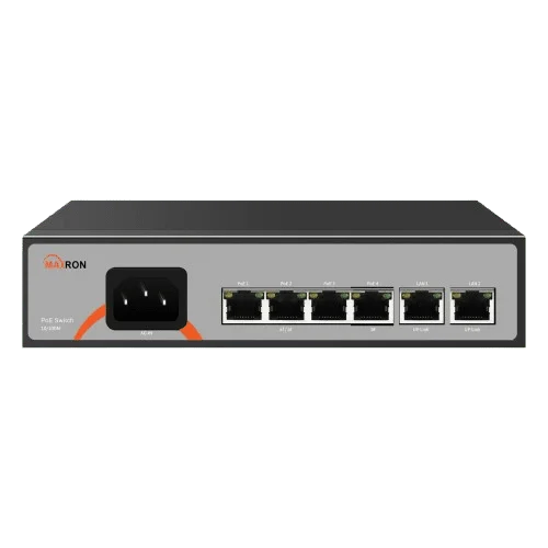 - تعداد پورتها: ۴ پورت POE (10/100Mbps) + ۲ پورت Uplink (10/100Mbps)