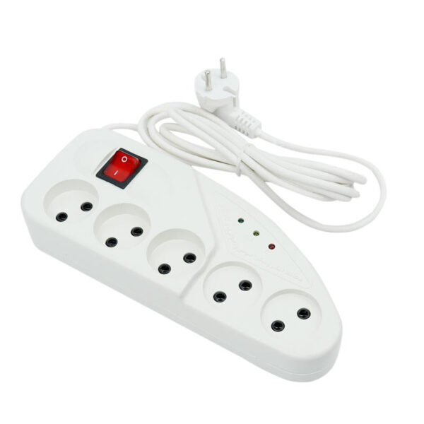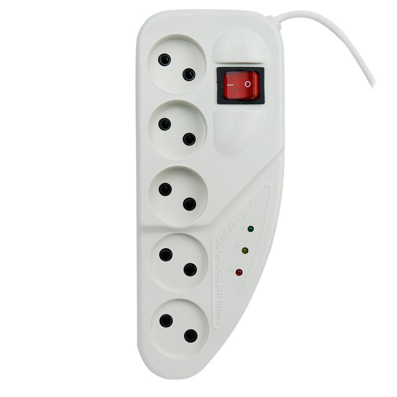 این محافظ برق مجهز به ۵ عدد پریز با فاصله مناسب است که میتوان از آنها برای اتصال همزمان ۵ دستگاه الکترونیکی یا برقی استفاده کرد. طول کابل این محافظ برق ۵ خانه ۳ متر است و میتوان آن را برای اتصال چند وسیله با فاصله مکانی بیشتر به کار برد.