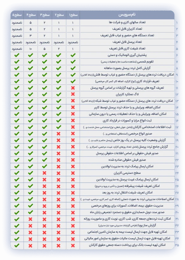 امکانات اختصاصی نسخه سطح 5 نرم افزار حضورو حقوق نوین پرداز: