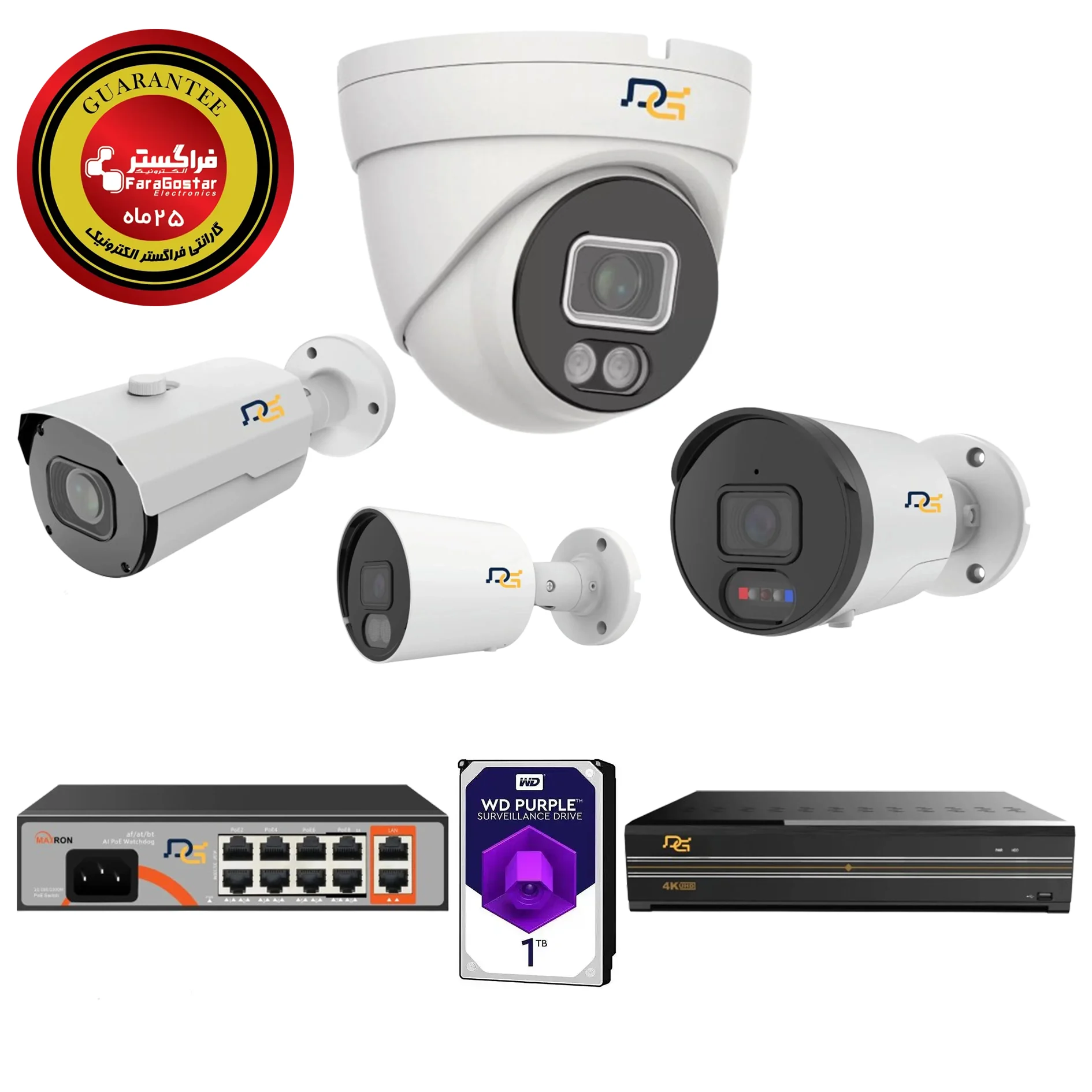 _ این پکیج آماده نصب، شامل تمامی تجهیزات مورد نیاز برای راه اندازی یک سیستم نظارت تصویری با کیفیت و هوشمند بوده و مورد تائید اماکن جهت اخذ پروانه کسب میباشد.